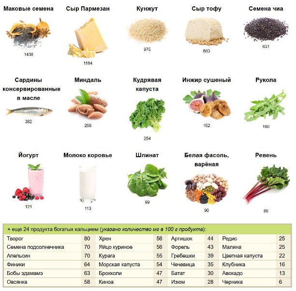 Содержание кальция в продуктах