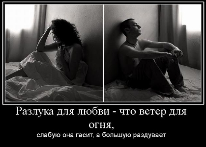 Картинка к первому посту очень точно отвечает на вопрос в названии темы. Очень точно. Если в разлуке любовь ушла, значит ее и не было, а была влюбленность, которая не всегда перерастает в любовь. Все очень просто.